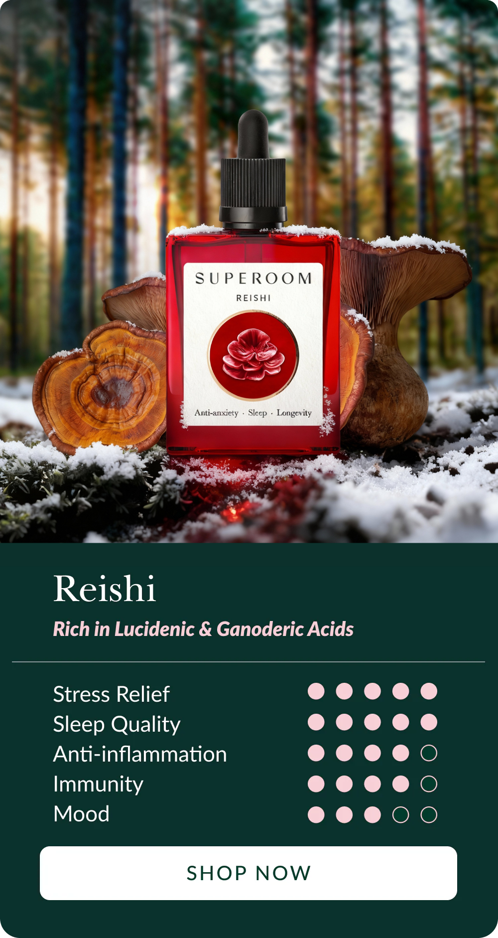 Superoom was born after our founder Roxy experienced a health crisis that led her to discover the power of functional mushrooms. Created to make proactive health effortless, elegant, and rooted in science — it’s wellness without compromise.